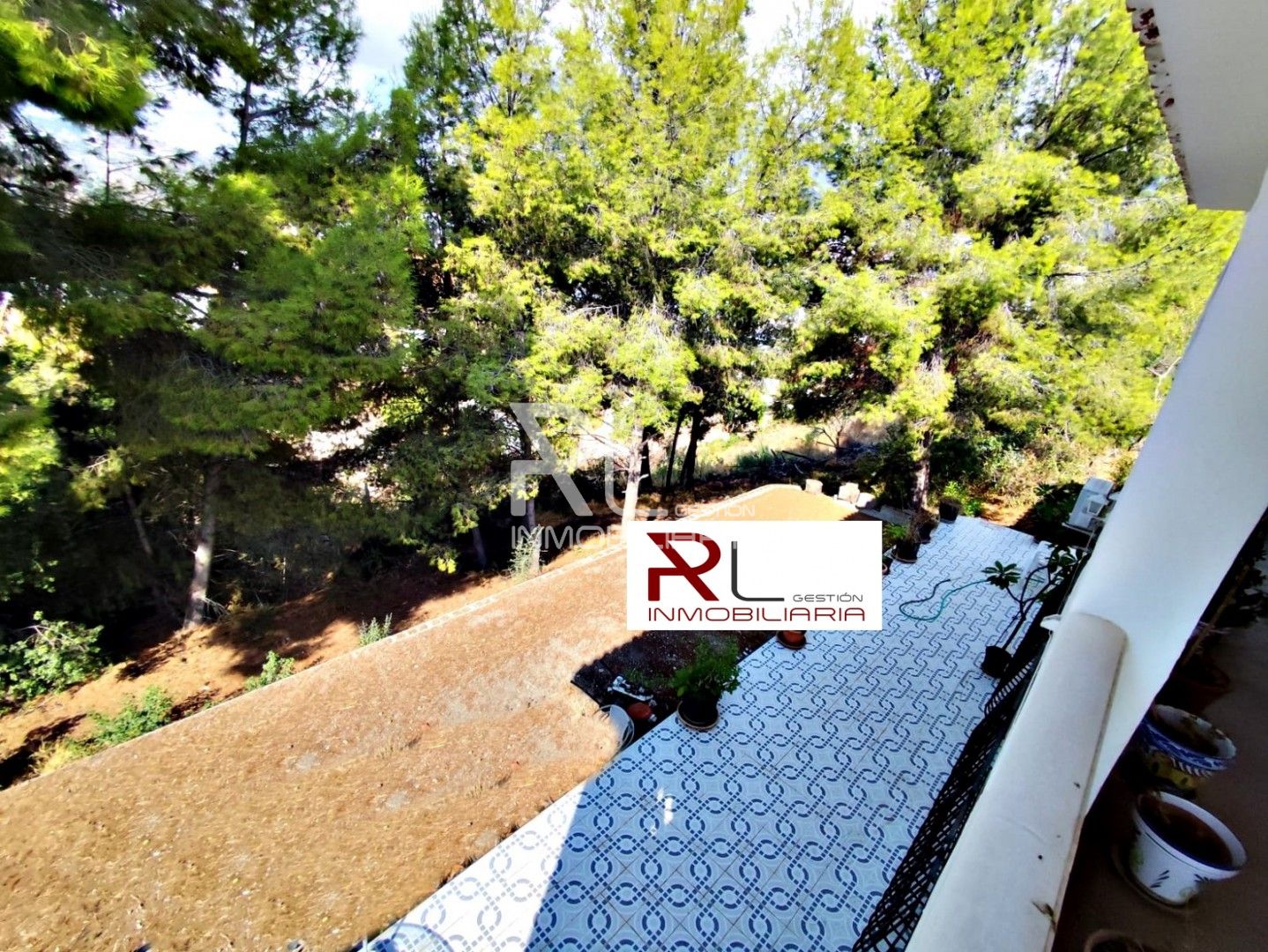 La parcela, de 2.050 m2 está poblada de plantas ornamentales y rodeada de pinos por la parte baja.